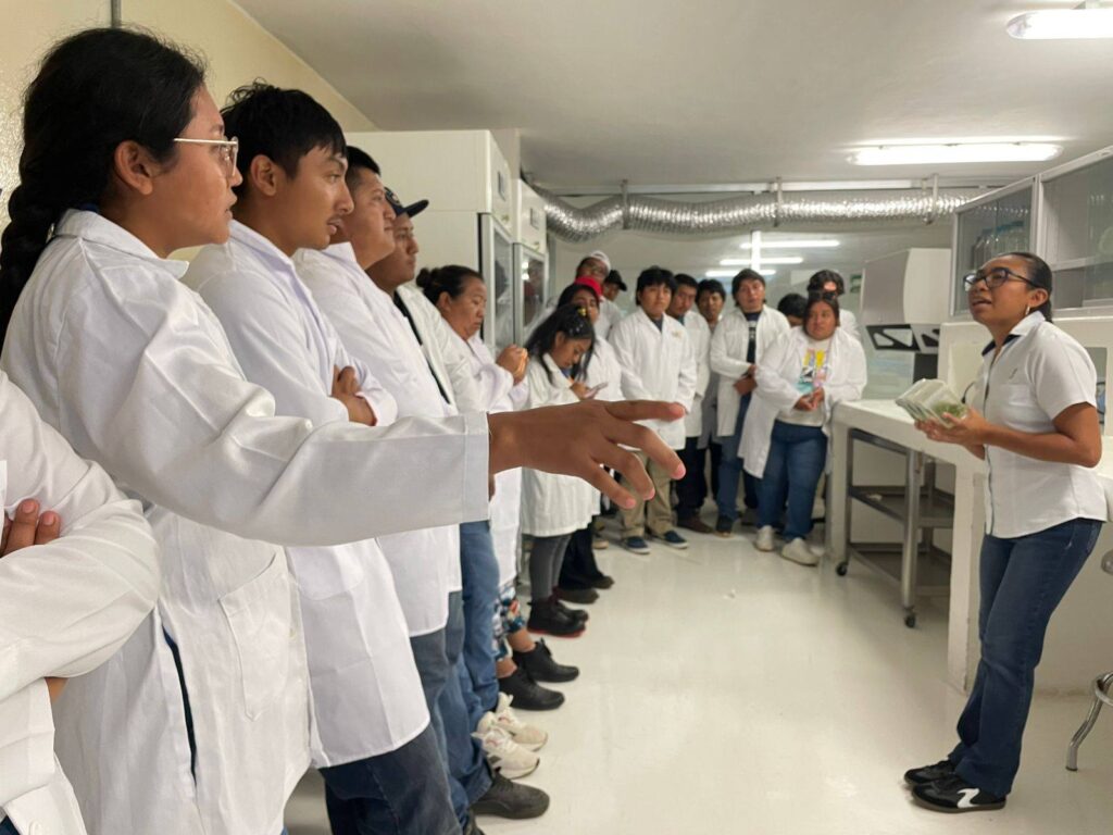 Durante el recorrido, conocieron de manera directa los procesos biotecnológicos utilizados en la producción vegetal, destacando el aprendizaje de técnicas de cultivo in vitro, fundamentales para la propagación de plantas en condiciones controladas. ![]()